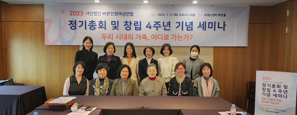 2023년도 회원분들과 함께 대한민국의 혁신을 이끌어가는 (사)바른인권여성연합이 될 수 있도록 많은 관심과 성원바랍니다.